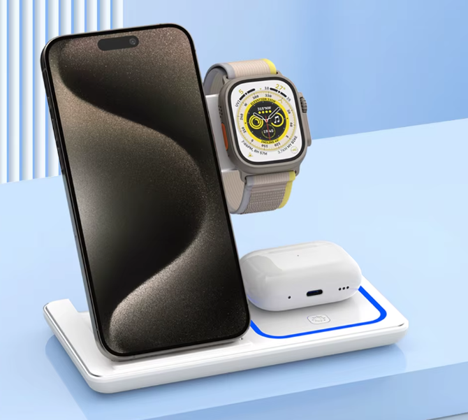 A Estação de Carregamento Easy Loading - 3 em 1 foi criada para quem quer praticidade absoluta. Com três áreas independentes, você carrega smartphone, smartwatch e fones ao mesmo tempo, sem perder velocidade e sem perder tempo. Mais eficiência, mais liberdade e zero bagunça.