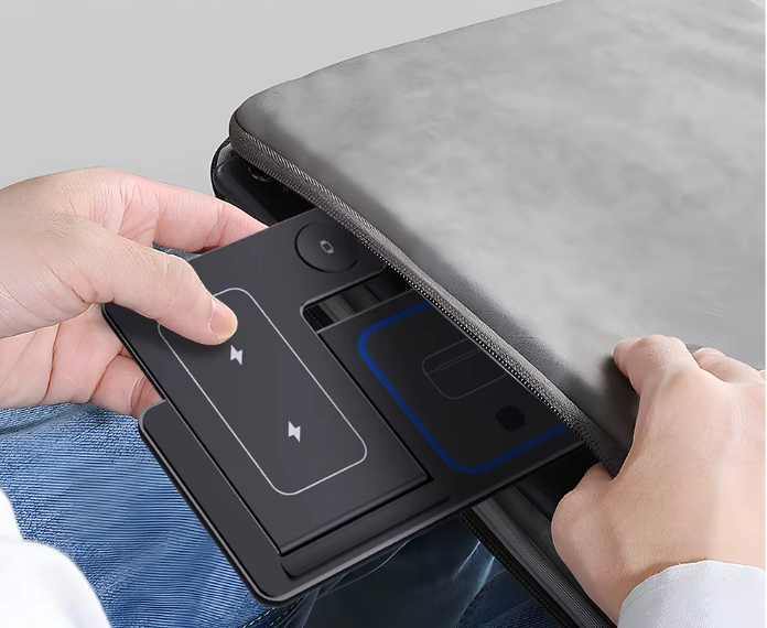 Seu design compacto, dobrável e com iluminação suave transforma qualquer ambiente. Além de liberar espaço, ela elimina fios, cria um setup mais limpo e ainda permite ajustar o ângulo do celular enquanto carrega.